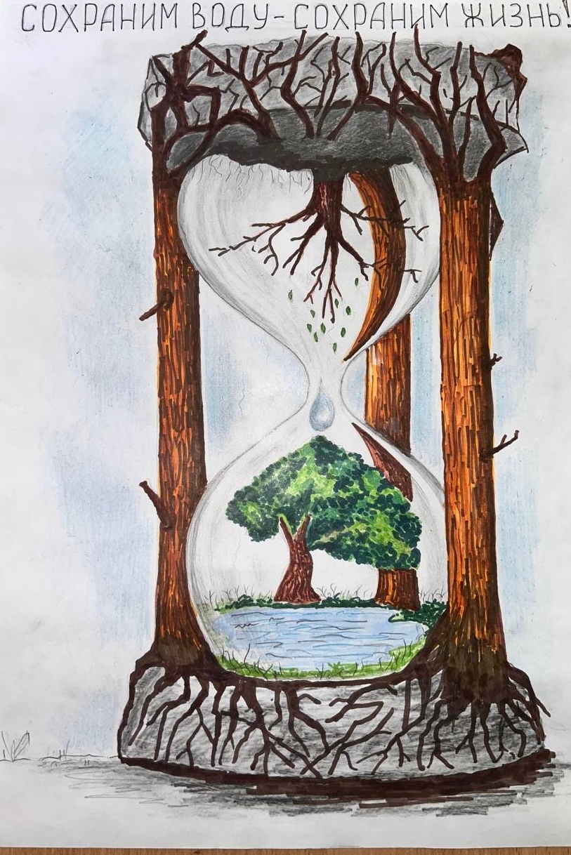 Её работа представлена в номинации рисунка «Эко-реклама» и посвящена важной теме — сохранению водных ресурсов Земли.